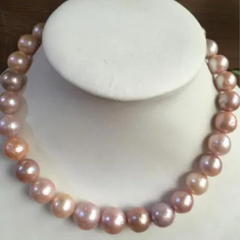 Special Offer ضخمة 13-14 مللي متر AAA ++ المياه العذبة جولة متعدد الألوان اللؤلؤ قلادة 18 بوصة 925 الفضة Discount 30% Today!